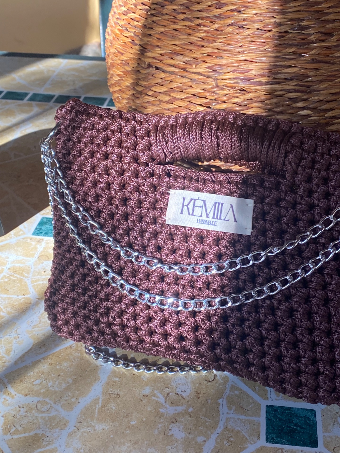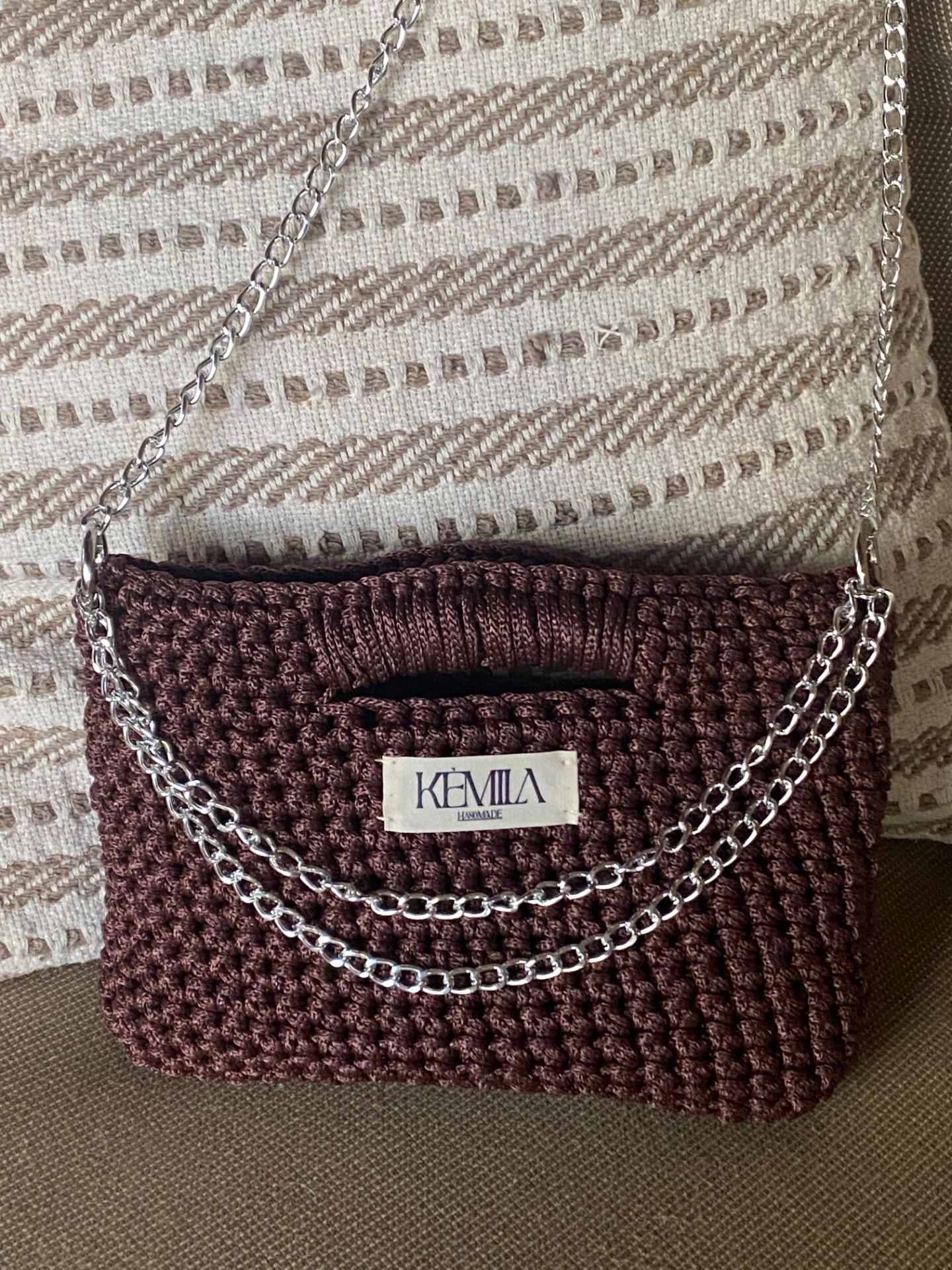 Brown crochet bag cordino