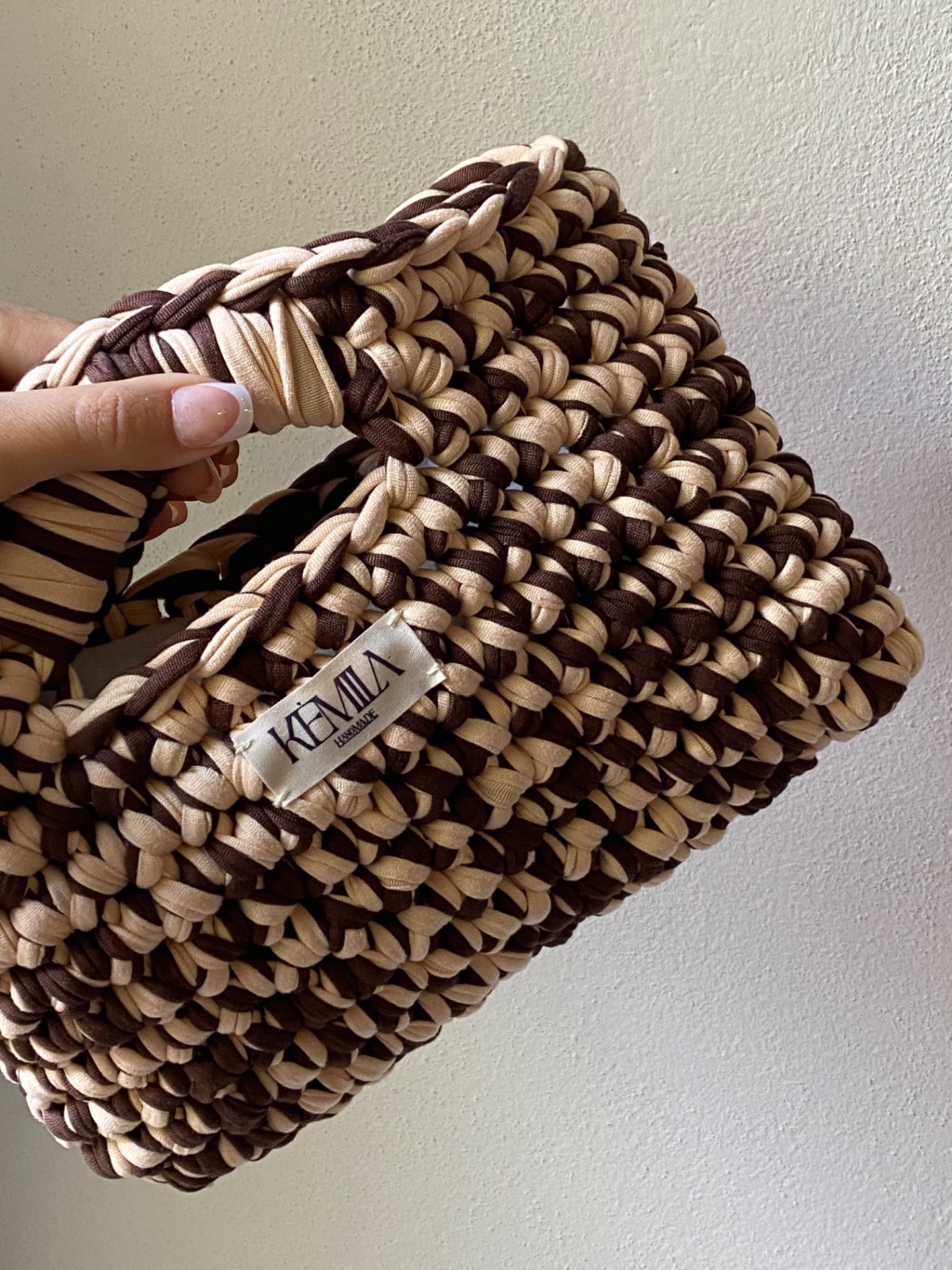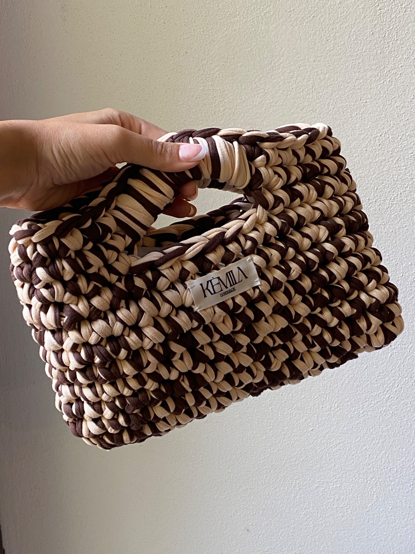 crochet bag doppio filato, realizzata a mano, con fodera interna e bottone a calamita